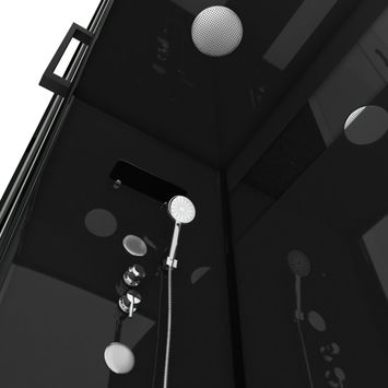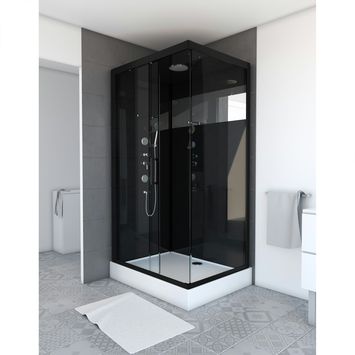 De rechthoekige douchecabine Black Mirror van Aurlane is 90 op 90 centimeter groot. De moderne douchecabine maakt van je dagelijkse douche een écht verwenmoment. 't Beste van al? Je kan de rechthoekige douchecabine Black Mirror installeren zonder siliconen. De cabine bestaat uit een centrale douchekolom, een douchebak, een douchedak, een voorzijde in zwart veiligheidsglas van 6 mm dik en een set achterwanden in zwart acryl. Tip: ook verkrijgbaar in andere vormen.