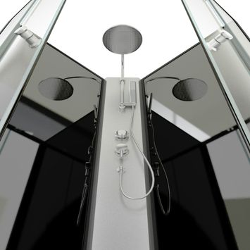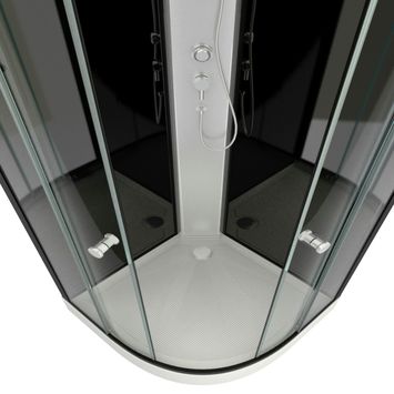 De kwartronde douchecabine Zen van Aurlane is 85 op 85 centimeter groot. De comfortabele regendouche is gemaakt uit een slimme combinatie van aluminium, metaal en veiligheidsglas van 5 mm dik, waardoor de douche tegelijkertijd praktisch en prachtig is. Je opent en sluit de kwartronde douchecabine Zen makkelijk dankzij 2 schuifdeuren met een magnetische sluiting, die ervoor zorgt dat het water ook tijdens het douchen in de cabine blijft. Kortom: op zoek naar een vrijstaande regendouche die je zo kan installeren in je badkamer? Kies voor deze stijlvolle douchecabine Zen! De douche wordt geleverd inclusief douchebak en ondersteuningsframe.
