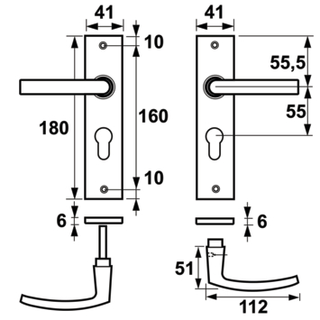 - geschikt voor binnendeuren met pc55 maatvoering