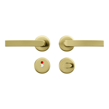 AXA Curve Klik Binnendeurset in een geslepen aluminium uitvoering in de kleur goud is geschikt voor binnendeuren van 38 tot 42 mm dik. De deurkrukken hebben een licht gebogen vorm en hebben geen zichtbare bevestigingspunten. Door de geslepen matte uitvoering zijn deze minder krasgevoelig en laten geen zichtbare vingerafdrukken achter. Deze deurkrukset is geschikt voor afsluitbare deuren met een WC- en badkamerslot. De deurkrukset wordt geleverd inclusief bevestigingsmaterialen en rozetten.