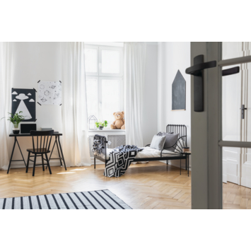 AXA Curve Klik Binnendeurset in een zwart geslepen aluminium uitvoering is geschikt voor binnendeuren van 38 tot 42 mm dik. De schilden en deurkrukken hebben een licht gebogen vorm en hebben geen zichtbare bevestigingspunten. Door de geslepen matte uitvoering zijn deze minder krasgevoelig en laten geen zichtbare vingerafdrukken achter. Deze deurkrukset is geschikt voor loopdeuren of deuren zonder slot. De deurkrukset wordt geleverd inclusief bevestigingsmaterialen.