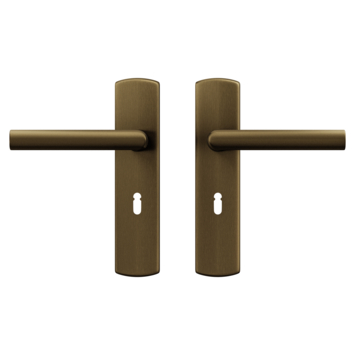 AXA Curve Klik Binnendeurset in een geslepen aluminium uitvoering in de kleur brons is geschikt voor binnendeuren van 38 tot 42 mm dik. De schilden hebben een licht gebogen vorm en de deurkrukken hebben een haakse vorm en hebben geen zichtbare bevestigingspunten. Door de geslepen matte uitvoering zijn deze minder krasgevoelig en laten geen zichtbare vingerafdrukken achter. Deze deurkrukset is geschikt voor afsluitbare deuren met een klaverslot van hart op hart 56mm. De deurkrukset wordt geleverd inclusief bevestigingsmaterialen.