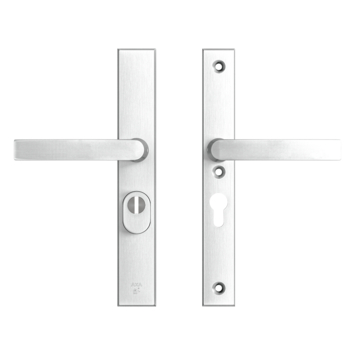 AXA veiligheidsbeslag in geslepen aluminium uitvoering in de kleur zilver voor deurdiktes van 38-54mm. Het AXA veiligheidsbeslag is uitgerust met kerntrekbeveiliging en beschikt over een SKG*** keurmerk en voldoet aan de eisen van Politiekeurmerk Veilig Wonen. Hierdoor zorgt dit veiligheidsbeslag van AXA voor een optimale inbraakwerendheid. De schilden hebben een rechthoekige vorm en de deurkrukken hebben een afgeronde vorm. Door de geslepen matte uitvoering zijn deze minder krasgevoelig en laten geen zichtbare vingerafdrukken achter. Dit AXA veiligheidsbeslag met smal schild is geschikt voor achterdeuren, schuurdeuren, bergingsdeuren, balkondeuren en garagedeuren met een hart op hart slotmaat van 55mm. De bijgeleverde seal voorkomt beschadiging van de verflaag bij het demonteren en houdt water en tocht effectief tegen. Het veiligheidsbeslag wordt geleverd inclusief bevestigingsmaterialen.