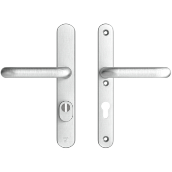 AXA veiligheidsbeslag in geslepen aluminium uitvoering in de kleur zilver voor deurdiktes van 38-54mm. Het AXA veiligheidsbeslag is uitgerust met kerntrekbeveiliging en beschikt over een SKG*** keurmerk en voldoet aan de eisen van Politiekeurmerk Veilig Wonen. Hierdoor zorgt dit veiligheidsbeslag van AXA voor een optimale inbraakwerendheid. De schilden en deurkrukken hebben een ronde vorm. Door de geslepen matte uitvoering zijn deze minder krasgevoelig en laten geen zichtbare vingerafdrukken achter. Dit AXA veiligheidsbeslag met smal schild is geschikt voor achterdeuren, schuurdeuren, bergingsdeuren, balkondeuren en garagedeuren met een hart op hart slotmaat van 72mm. De bijgeleverde seal voorkomt beschadiging van de verflaag bij het demonteren en houdt water en tocht effectief tegen. Het veiligheidsbeslag wordt geleverd inclusief bevestigingsmaterialen.