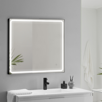 Badkamerspiegel Isla met verlichting vierkant 80 x 80 cm met lijst zwart