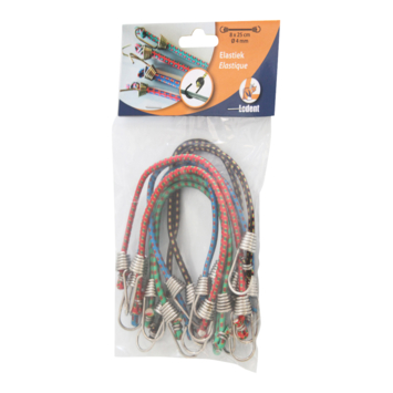 Met snelbinders bind je binnen een handomdraai goederen veilig vast op bijvoorbeeld de pakkendrager van je fiets. Deze Jumbo mini snelbinders met veiligheidshaken zijn 25cm lang en handig voor het vastmaken van kleine spullen. Dankzij de gepatenteerde veiligheidshaken klik je deze snelbinder eenvoudig vast. Deze set bestaat uit 8 binders met ieder een maximale belasting van 7kg. Kortom: deze snelbinder laat niets los.