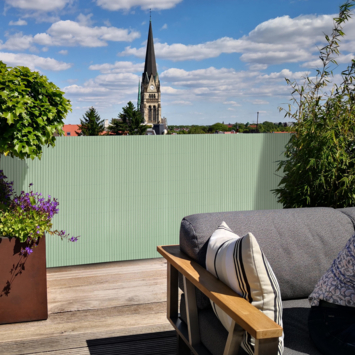 Het balkonscherm PVC groen creëert een sfeervolle plek en privacy op jouw balkon. De hoogwaardige kunststof latten zijn strak aan elkaar vast gemaakt. Je bent hiermee verzekerd dat je pottenkijkers buiten houdt.