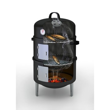 Een rookoven is een leuke buitenkeuken om te experimenteren met voedsel roken. De Barbecook rookoven is gemaakt van gelakt plaatstaal en heeft geëmailleerde houtskool- en waterpannen. Je kan de rookoven gebruiken met houtskool of houtsnippers. Je kan de temperatuur gemakkelijk bijstellen door middel van klepjes aan de zijkant te openen of sluiten. De rookoven heeft een diameter van 44 cm en is 82 cm hoog. De Barbecook rookoven heeft verchroomde roosters van 40 cm diameter en haken voor het ophangen van bijvoorbeeld vis. Gebruik de rookoven om vis, schaaldieren, vlees, groenten, noten, paddestoelen en allerlei kazen te roken. De Barbecook rookoven is een kwalitatief instapmodel dat je het hele jaar door kan gebruiken.