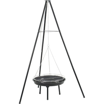 Een driepoot is een originele en leuke manier om buiten te koken. Deze stalen driepoot kan je over een vuurkorf, vuurschaal of kampvuur opstellen. De driepoot heeft een grillrooster van 50 cm diameter aan een verstelbare ketting. Op die manier kan jouw vlees garen op de gewenste hoogte. Je hebt geen barbecue meer nodig met de originele barbecue driepoot/kampvuur.
