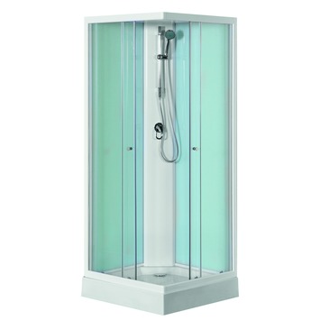 De vierkante Barna douchecabine van 90 op 90 centimeter is een all-in-one douche met een flexibele handsproeier. 't Beste van al? Je kan de cabine installeren zonder siliconen. De cabine bestaat uit: een centrale douchekolom, een douchebak, een voorzijde in glas en een set achterwanden in wit acryl.
