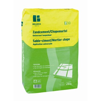 Het zandcement (25 kilogram) van Beamix is een kant-en-klare droge mortel voor het traditioneel smeren van dekvloeren of het leggen van tegels. Het zandcement is verkrijgbaar in verschillende uitvoeringen, waaronder 730 eco.