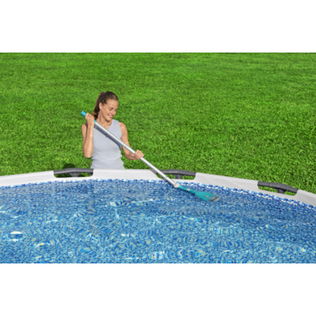 Maak zwembadonderhoud zo simpel mogelijk met de Flowclear™ AquaTech™ zwembadstofzuiger. Met één druk op de knop zuig je bladeren, zand en ander vuil moeiteloos op. Geen gedoe met slangen of snoeren: dankzij de werking op AA-batterijen gebruik je hem waar en wanneer je wilt. Ideaal als je jouw zwembad snel klaar wilt maken voor een frisse duik. De 3-voudig verstelbare telescopische stang van 119 cm zorgt ervoor dat je zelfs de lastigste hoekjes bereikt. Het transparante vuilreservoir van 0,9 liter maakt direct zichtbaar wanneer legen nodig is. Geschikt voor whirlpools, opbouw- en inbouwzwembaden tot 305 cm doorsnee: schoon water is voortaan altijd binnen handbereik.
