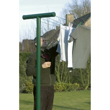 Elke waslijn verkiest de groene palen van Betafence, omdat je er wel vier lijnen op kan spannen. Hoe? Makkelijk! Rijg je waslijn gewoon door de gaatjes in het geplastificeerde bovenstuk van beide palen. Zo heb je in geen tijd meters lijn om al je fris gewassen kleren aan op te hangen.