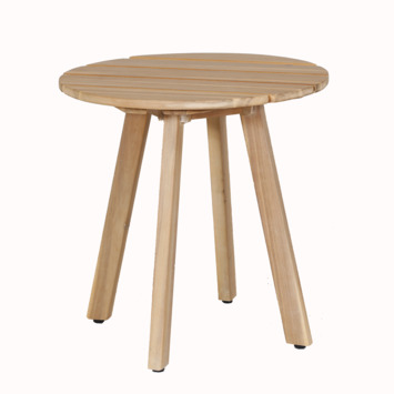 Deze bijzettafel Jura is een leuk, rond bijzettafeltje met 4 authentieke poten, een hoogte van 45 centimeter en een diameter van 45 centimeter. De bijzettafel is gemaakt uit reeds geolied hardhout en past zowel in je interieur als je exterieur. Leuk naast je favoriete tuinbank of tuinstoel ... Ook verkrijgbaar in een lager model met diameter 60 cm. Tip: het houten tafeltje kan tegen een stootje, maar blijft langer schoon als je het tijdens slecht weer afdekt.