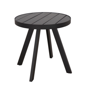 Deze bijzettafel Marly is een modern, rond bijzettafeltje met 4 authentieke poten, een hoogte van 45 centimeter en een diameter van 45 centimeter. De bijzettafel bestaat uit stalen poten en een kunststoffen blad in de kleur antraciet. Past zowel in je interieur als je exterieur. Leuk naast je favoriete tuinbank of tuinstoel ... Ook verkrijgbaar in een lager model met diameter 60 cm.