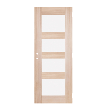 Deze decoratieve deuren zijn plaatsklare deuren. Het slot en de scharnieren zijn vooraf gefreesd en de deuren, deurkasten en het deurbeslag zijn omkeerbaar. Onnodig om zich vooraf te bekommeren over de draairichting van de deur daar de installateur hierover tot op het laatste moment kan beslissen. Deze deuren zijn opgebouwd uit gevingerlast massief hout. De samengestelde compositie maakt de structuur bijzonder stabiel. De deuren zijn zeer makkelijk te schilderen en zijn voorzien van mat glas. Let op! Vergeet geen bijhorende deurkassement te voorzien.