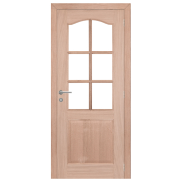 Deze decoratieve deuren zijn plaatsklare deuren. Het slot en de scharnieren zijn vooraf gefreesd en de deuren, deurkasten en het deurbeslag zijn omkeerbaar. Onnodig om zich vooraf te bekommeren over de draairichting van de deur daar de installateur hierover tot op het laatste moment kan beslissen. De Forte M04 eiken deur wordt veelal gebruikt in een landelijke omgeving waarbij men lichtinval wil gebruiken. De deur is opgebouwd uit een massief kader met daarop een eiken fineer. Zelfde principe voor het paneel onderaan, namelijk een massief paneel met daarop een eiken fineer. Het bovenste paneel is voorzien van 6mm veiligheidsglas dat al geplaatst is. Deze deur is ook beschikbaar in andere afmetingen. Let op! Vergeet geen bijhorende deurkassement te voorzien (artikel 483597, 542917, 483598, 526156, 542918 of 526157)