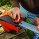 Ketting op spanning brengen is kinderspel en het zagen een genot. Een aanrader voor iedereen die boomstammen te zagen heeft.