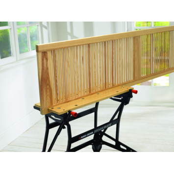 De Black+Decker Workmate WM626-XJ is een in hoogte verstelbare werkbank. Ideaal om te gebruiken als werkbank, zaagbok of als hulpmiddel bij verf- en zaagklussen. De werkbank heeft twee hoogtes, namelijk 775 en 595 mm en heeft een spanwijdte van 384 mm. Het onderstel is van stevig staal en heeft een draagcapaciteit van 250 kg. Door het compacte design is de workmate gemakkelijk op te bergen en te vervoeren. De dubbele klemassen leveren extra klemkracht en gebruiksmogelijkheden. De rubberen steunen ten slotte zorgen voor een antislip-effect.