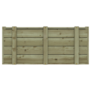 Deze plantenbak met Trellis Hout 140x90x40 dat dient als klimrek is geschikt voor klimplanten en staat zeer mooi in je tuin. De plantenbak is voorzien van een dubbele trellis, voor extra stevigheid en een luxe uitstraling. Het hout van de plantenbak en het trellisscherm is geimpregneerd en daardoor beschermd tegen weerselementen. Maten De plantenbak is 140 centimeter hoog, 90 centimeter breed en 40 centimeter diep. Onderhoud Vanwege het feit dat hout een natuurproduct is er een kans dat het gaat werken wanneer het in aanraking komt met weer. Op den duur kan de kleur van het hout veranderen of kunnen er scheurtjes in het hout ontstaan. Om dit zoveel mogelijk te voorkomen is het belangrijk dat het hout elk jaar behandeld wordt. Het hout kan behandeld worden met een tuinmeubelolie. Voor het beste resultaat is het aan te bevelen het hout eerst schoon te maken en te schuren. Wanneer deze stofvrij is kan de tuinmeubelolie gelijkmatig worden aangebracht. Daarnaast wordt geadviseerd het hout regelmatig schoon te maken met een natuurlijke zeep en een zachte borstel.