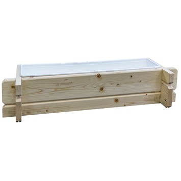 Deze houten bloembak maakt je houten tuinhuis helemaal af! De bloembak is 90 centimeter lang en 20 centimeter breed, gemaakt uit licht hout (inclusief waterdichte bak uit plastic in de kleur wit) en makkelijk te bevestigen aan je tuinhuis. Combineer met de leukste bloemetjes van 't seizoen.