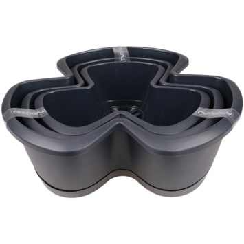 Geef jouw planten een bijzondere plek met de Respana Trio bloempot van Prosperplast. Het slimme ontwerp bestaat uit drie gestapelde potten in een driearmige vorm, waardoor je een mooie cascade van planten creëert. Handig als je houdt van groen, maar geen grote ruimte hebt. De totale inhoud van 28,1 liter biedt plek voor allerlei soorten planten, van kruiden tot bloeiende soorten. De pot is gemaakt van hoogwaardig kunststof dat UV-bestendig is, zodat de antracietkleur mooi blijft, ook bij buitengebruik. De stabiele constructie en het zelfsluitende onderzetsysteem maken water geven en verplaatsen eenvoudig. Met een diameter van 47 cm en een hoogte van 40,5 cm is de Respana Trio groot genoeg om op te vallen, maar compact genoeg om overal neer te zetten.