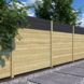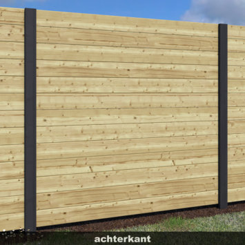 De werkende breedte van de plank is ca. 13,2 cm, dit is de breedte minus het deel van de tand en groef die in elkaar vallen. Met 14 planken kun je een schuttingdeel van ca. 184 cm hoog maken. Meer informatie over deze klus is te vinden op de website onder klusadvies. Grenenhout is een van de meest gebruikte houtsoorten in de tuin. Het geïmpregneerde hout (onder KOMO-keur) heeft een verlengde levensduur, zelfs bij grondcontact. Het hout hoeft niet direct behandeld te worden met beits; na vijf jaar wordt aanbevolen om het opnieuw te behandelen met impregneermiddel of beits.
