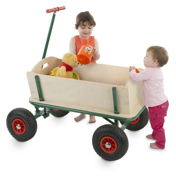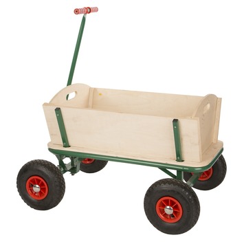 Wij zijn holderdebolder verliefd op deze mooie houten bolderkar van Practo. En jij? De bolderwagen is gemaakt uit een metalen frame met een handgreep, een authentieke houten bak en 4 rubberen luchtbanden. De houten bak van deze bolderkar is 90 centimeter lang, 60 centimeter breed en heeft een hoogte van 56 centimeter. Je kan er tot 100 kilogram spullen ... of kinderen mee vervoeren. Praktisch én leuk, toch?