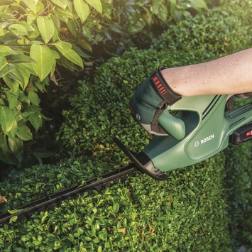 De EasyHedgeCut 18-45 is perfect voor het onderhoud en snoeien van kleine en middelgrote heggen. Hij heeft een uitzonderlijk laag gewicht van 2,3 kg met een ergonomisch ontwerp voor comfortabel hanteren in diverse posities tijdens het werken, voor minder belasting van het bovenlichaam bij langer werken met het gereedschap. De Li-Ion-accu van 18 V levert een optimaal vermogen in combinatie met het Bosch 'Anti-Blocking'-systeem om te zorgen voor uitstekende omstandigheden voor zuiver, krachtig en continu snoeien zonder frustrerende tegenslagen zoals afslaan van de motor. Snoerloze mobiliteit maakt bewegingsvrijheid in de tuin mogelijk zonder de beperking of het risico van doorsnijden van netsnoeren. Deze wordt geleverd zonder accu en lader.