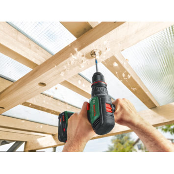 De Bosch AdvancedDrill 18V-80 verenigt krachtig boren en schroeven met optimale flexibiliteit. Met een maximaal koppel van een sterke 78 Nm en variabel toerental pakt deze elke klus probleemloos aan - van geleidegaten tot het indraaien van schroeven, bouten of bevestigingsmiddelen in hout, metaal of kunststof. Deze robuuste machine is gebouwd om lang mee te gaan dankzij een borstelloze motor en afneembare metalen boorhouder. In de boorhouder van 13 mm kunnen diverse boren en schroefbits, gatenzagen en accessoires worden bevestigd. Het vastmaken van de magnetische kap is een praktische functie voor elke schroeftoepassing, zodat schroeven niet met de hand op hun plek hoeven te worden gehouden. Deze schroefboormachine met hoog prestatievermogen heeft een QuickSnap-interface, zodat de boorhouder kan worden gewisseld en extra verkrijgbare opzetstukken om krappe plekken te bereiken kunnen worden gebruikt. Een extra handgreep verbetert de controle en stabiliteit tijdens bediening, wat extra comfort en minder vermoeidheid betekent. De geïntegreerde Bosch Syneon Technology zorgt voor optimaal vermogen en maximale looptijd. Het gereedschap maakt deel uit van het 18V POWER FOR ALL-systeem. Eén accu kan worden gebruikt voor alle 18V POWER FOR ALL-gereedschappen.
