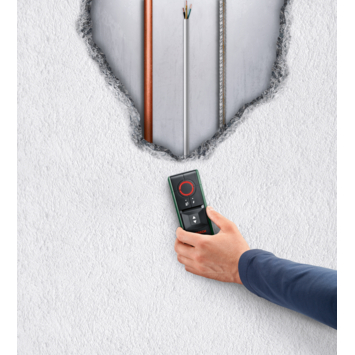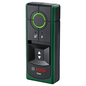 De digitale detector Truvo van Bosch wordt gebruikt voor de detectie van stroomvoerende leidingen en voorwerpen van metaal. Het LED-lichtje met lampsysteem geeft aan waar er geboord kan worden. De detector heeft een intuïtieve bediening door de eenvoudige eenknopbediening.