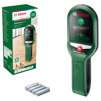 De detector UniversalDetect van Bosch combineert een maximale gebruikstevredenheid met de beste prestaties. De detector is geschikt voor hout, metaal, ijzer, koper en spanningvoerende leidingen. Deze detector wordt geleverd met 4xAAA batterijen.