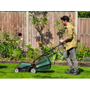 De Bosch grasmaaier ARM34 - 1300 W is de ideale grasmaaier voor een mooi gazon. De Powerdrive-motor van 1300 watt levert een betrouwbaar resultaat, zelfs bij hoog en vochtig gras. De Bosch grasmaaier ARM34 - 1300 W is uitgerust met het Ergoflex-systeem dat voor een goede lichaamshouding zorgt tijdens het maaien. De maaier is ook voorzien van een opvangbak van 40 liter die het gemaaide gras opvangt. De grasmachine beschikt ook over een doeltreffende graskam die je in staat stelt te maaien tot aan de rand van je gazon: langs muren, perken en gazonkanten. Kortom, de Bosch cirkelmaaier ARM34 - 1300 W is een doeltreffende krachtpatser die voor een mooi resultaat zorgt.