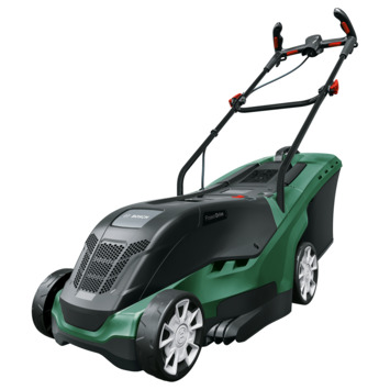 De Bosch grasmaaier Universal Rotak 450 is een stille grasmaaier. Het geluid wordt door de Pro-silence technologie van Bosch tot een aangenaam niveau gereduceerd en verstoort de rust in je tuin niet. De Pro-silence technologie verlaagt het geluidsniveau met wel 75% naar 89 dB. De Power-drive motor heeft een vermogen van 1300 Watt en zorgt altijd voor goede maai resultaten. De stalen messen hebben een maaibreedte van 35 cm. De messen kunnen in een simpele beweging van maaihoogte worden veranderd. Zo maai je het gras altijd op jouw favoriete lengte. En met het Bosch LeafCollect-mes kan de grasmaaier altijd goede prestaties geven, ondanks dat het gazon onder de bladeren ligt. Met de graskam kan er gemakkelijk langs de randen worden gemaaid. Dankzij het Ergoflex systeem is de grasmaaier gemakkelijk te hanteren. De grasmaaier is hierdoor makkelijk te besturen, terwijl je gelijk ook een betere steun hebt. Je kan verschillende standen instellen voor jouw beste werkhouding. De opvangbak heeft een inhoud van 40 liter en zorgt voor minder onderbrekingen tijdens het maaien. De opvangbak kan opgevouwen worden en zorgt dat je de machine makkelijk kan opbergen. Kortom, de Bosch grasmaaier Universal Rotak 450 zorgt altijd voor een verzorgd en mooi gazon.