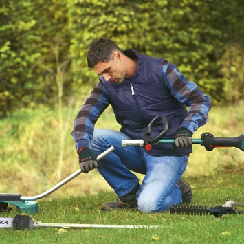 De Bosch AMW 10 HS (motorunit en heggenschaar) mag in geen enkel tuinschuurtje ontbreken. Deze bestaat uit de krachtige Bosch AMW 10 motorunit met 1000 W en een heggenschaar-hulpstuk met lange steel en een meslengte van 430 mm. De combinatie van AMW 10 aandrijfeenheid en heggenschaar levert uitstekende snoeiprestaties bij elke klus. Het ergonomische ontwerp en de verstelbare handgreep van de AMW 10 HS maken deze eenvoudig te hanteren, zelfs bij bovenhands snoeien.