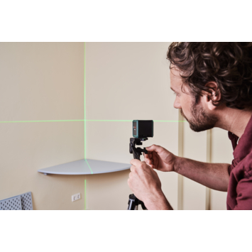 De Quigo Green is milieuvriendelijk, met gerecycled materiaal in het product en de verpakking, en een geoptimaliseerd stroomverbruik. Eenvoudig te positioneren met het meegeleverde statief, is deze laser perfect voor het ophangen van foto's, tegelwerk, het monteren van gordijnstangen en het installeren van keukenmeubels. De set bevat ook een 1,1 meter aluminium statief en 2 batterijen (1,5 V LR03). Maak je project gemakkelijker en nauwkeuriger met de Quigo Green!