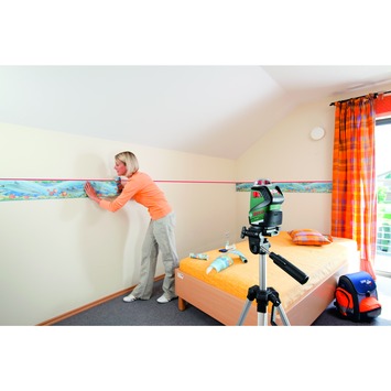 Deze lijnlaser van Bosch is het ideale hulpmiddel voor bij het klussen en is veelzijdig inzetbaar. Deze lijnlaser projecteert een horizontale lijn over een breedte van 360°, waardoor objecten zeer nauwkeurig uitgelijnd kunnen worden in een volledige ruimte. Je kan de hoogte instellen en vastzetten met de telescopische steel. Door de automatische zelfnivellering zijn de geprojecteerde lijnen altijd waterpas. De Bosch lijnlaser PLL360 projecteert ook zonder problemen nauwkeurige verticale lijnen door middel van een kruislijn. Bovendien kunnen dankzij de lockfunctie en eenvoudige positionering diagonale lijnen geprojecteerd worden in elke hoek en op elke gewenste hoogte. Kortom, met de Bosch lijnlaser PLL360 is accuraat uitlijnen eenvoudig.