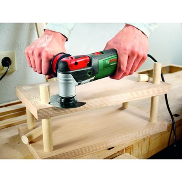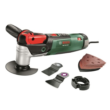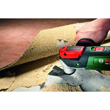 De Pmf 250 CES is een veelzijdig gereedschap van Bosch. Dit oscillerende elektrische gereedschap kan je gebruiken om te zagen, slijpen, frezen, vijlen en schuren. Deze multifunctionele tool heeft een breed accessoire-assortiment. Dankzij een vermogen van 250 watt kan het gereedschap tot 20.000 oscillatiebewegingen in een hoek van 2,8° per minuut maken. Ook bij belasting zorgt het Constant Electronic-systeem ervoor dat je onafgebroken op een hoog vermogen kan rekenen. Dankzij de viertraps diepteaanslag weet hij zelf de meest moeilijke plekken te bereiken en kan je tot op de milimeter precies werken. Het unieke SDS-systeem zorgt ervoor dat je opzetstukken eenvoudig en veilig kan wisselen zonder gereedschap. Met de Bosch Pmf 250 CES heb je een krachtige allrounder in handen.