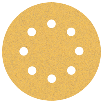 5-delige schuurbladenset 115 mm, 80. Geschikt voor het schuren van alle houtsoorten, hardhout, spaan- en bouwplaten en metaal. Passend bij excenterschuurmachines van Bosch, Einhell, Kress, Peugeot, Skil, Stayer.