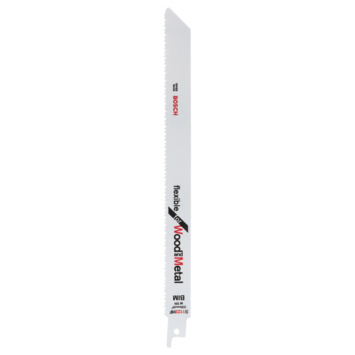 Bosch bi-metaal reciprozaagblad `flexible for wood and metal` voor het zagen van hout met spijkers 5-175 mm en staal en buizen van 3-12 mm. Geschikt voor hout met spijkers, metaal, metaalplaat, buizen en aluminium profielen.