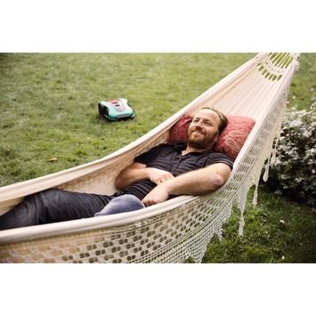 De maaier doet alles volledig automatisch en zelfstandig. Na het maaien keert de Bosch Indego 400 robotmaaier terug naar zijn basisstation om op te laden. Diverse sensoren detecteren obstakels zodat hij hierrond manoeuvreert.