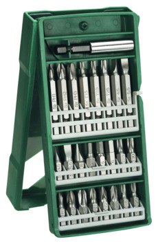 handig, al deze bitjes bij elkaar in zo'n makkelijk doosje die ook nog eens in mijn koffer past waar mijn boor inzit. overzichtelijk zo bij elkaar. een hele goede aankoop!