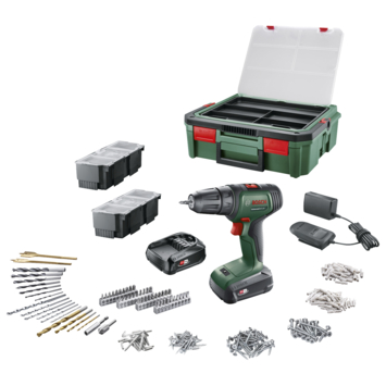 De accuschroefboormachine UniversalDrill 18 van Bosch, de beste prijs voor een 18 V accuschroefboormachine in de markt! De accuschroefboormachine met twee standen UniversalDrill 18 van Bosch is dankzij Lithium-Ion-technologie zeer krachtig. Bovendien verhindert de technologie zowel geheugeneffect als zelfontlading. Bovendien regelt de intelligente Syneon-chip het perfecte samenspel van Lithium-Ion-accu, krachtige motor en robuuste aandrijving. Daarbij komt een planeetwielaandrijving met hoog vermogen en 2 standen, die zich door een zeer rustige gang en een optimale krachtoverdracht onderscheidt.
