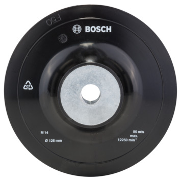 Bosch steunschijf voor haakse slijper 125mm. Grote temperatuurbelastbaarheid, loopt zeer rustig en is breukvast.