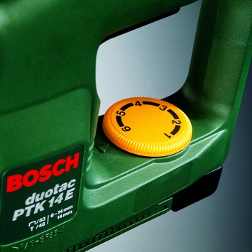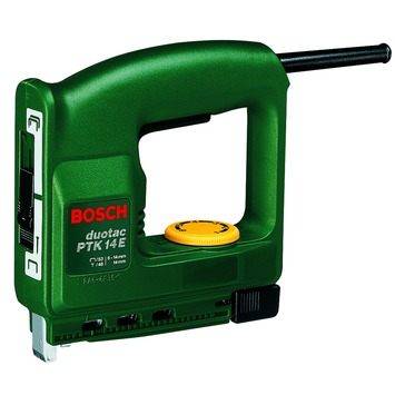 Deze elektrische tacker van Bosch is een handige nietmachine waarmee moeiteloos en snel geklust kan worden. De tacker bevat een stelwiel waarmee je de slagkracht kan instellen, voor op het materiaal afgestemde werkzaamheden. Er kan tevens snel gewisseld worden van bevestigingsmateriaal zonder magazijn- of frontplaatwissel. Door het Bosch-duotac-automaat kunnen er 2 nieten tegelijk worden verwerkt. Hierdoor wordt het scheuren van bijvoorbeeld fijne stoffen of folie voorkomen. De tacker verwerkt tevens nieten en nagels tot 14 mm en heeft een gering gewicht van 1,1 kg. Dit maakt de Bosch tacker PTK14E ideaal in gebruik.
