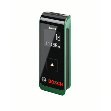 De Zamo afstandsmeter van Bosch wordt gebruikt voor het nauwkeurig meten van trajecten en afstanden met behulp van een laser. De afstandsmeter geeft vervolgens zeer exact de juiste afstand weer op het display met slechts 1 druk op de knop. De Bosch laser afstandsmeter is handzaam met een meetbereik van 15 cm tot maximaal 20 meter. De nauwkeurigheid bij het meten is 3 mm. Hierdoor is het apparaatje zeer geschikt voor bijvoorbeeld het opmeten van ruimtes en voor het ophangen van schilderijen. Daarnaast is de afstandsmeter erg handig bij het bepalen van de plek van een hanglamp exact boven een tafel. De bijbehorende batterijen (2x AAA) zijn meegeleverd. Je kunt dus direct aan de slag.