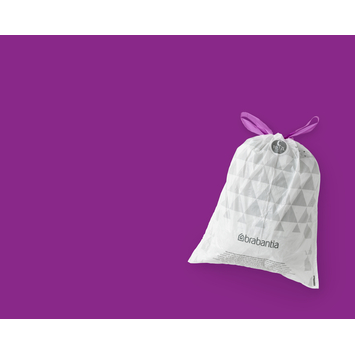 Brabantia afvalzakken zijn afgestemd op de Brabantia pedaalemmers en afvalverzamelaars. Voor ieder model is er een perfect passende afvalzak. Zo kan je snel en efficiënt een vuilniszak plaatsen. Dankzij de handige trekband sluiting is een volle zak bovendien eenvoudig te verwijderen en dicht te knopen.