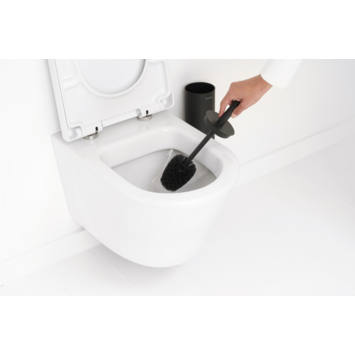 De Brabantia MindSet Toiletborstel met houder is uitgerust met slimme functies die het schoonmaken van je toilet aanzienlijk vergemakkelijken. De borstel is speciaal ontworpen om moeiteloos bij moeilijk bereikbare plekken, zoals onder de rand van de toiletpot, te komen. De gesloten houder zorgt ervoor dat de borstel discreet opgeborgen is wanneer hij niet in gebruik is. Dankzij de stalen greep is het schoonmaken hygiënisch, en de kunststof binnenhouder is eenvoudig te legen. De houder kan zowel op de grond worden geplaatst als aan de muur worden bevestigd, wat zorgt voor flexibiliteit in je badkamerinrichting.