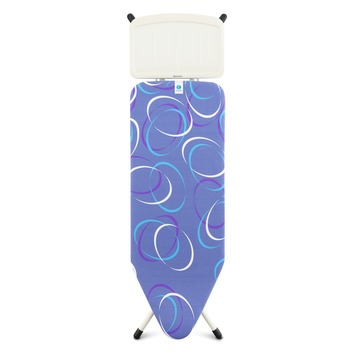 De strijkplank Circles van Brabantia bestaat uit een breed werkblad op een extra stevig frame met 4 poten van 25 mm dik. Het werkblad zelf is 124 centimeter lang, 45 centimeter breed en beschikt over en houder voor je strijkijzer en een 100% katoenen overtrek met een veerkrachtige schuim- en viltlaag. Maak je keuze uit verschillende wasbare overtrekken zoals dit blauwe cirkelpatroon. Goed om te weten: de strijktafel is in de hoogte verstelbaar van 75 tot 98 centimeter, zodat iedereen comfortabel kan strijken. Inclusief antislip-beschermdoppen, safety-lock tegen ongewenst inklappen en framevergrendeling tegen ongewenst uitklappen.