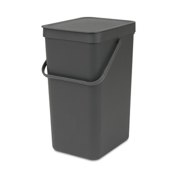 Brabantia afvalemmer Sort & Go 12 liter. Je kunt de afvalbak van 12 liter gebruiken voor flessen, blik, plastic of wat je verder maar kwijt wilt. Het grote handvat en de handige grip aan de onderkant van elke afvalemmer maken het legen gemakkelijk. PerfectFit Brabantia afvalzakken met trekbandsluiting verkrijgbaar (code C) gemakkelijk aan te brengen met bijpassende 100% composteerbare PerfectFit Brabantia afvalzakken zijn verkrijgbaar. Kan aan de wand bevestigd worden of los op de vloer staan - inclusief wandhouder.